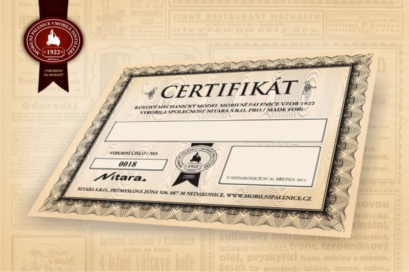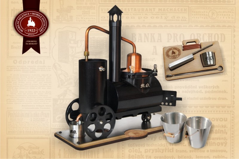 Limitovaná sada Mobilní pálenice Vzor 1922 Edice Jubileum s certifikátem na jméno majitele a gravírováním monogramu rozšířená o Pamětní soudek 2012. Miniaturní nerezový soudek s podstavečkem a letopočtem 2012.Výborný způsob jak archivovat nejen vypálený destilát, ale i pohodové chvilky strávené při jeho destilaci.
