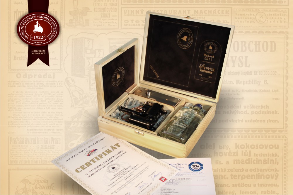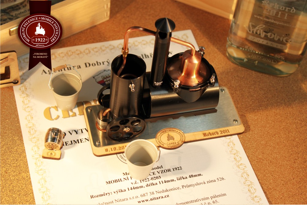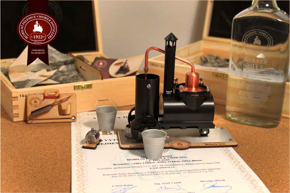 Modely mobilní pálenice jsou vyráběny v malých limitovaných sériích a jejich precizní zpracování, funčnost a použití kvalitních kovových materiálů z nich dělá zajímavý, sběrateli vyhledávaný technický unikát. Na model pálenice jsme použili kvalitní hliníkové slitiny, s černým eloxovaným povrchem, který výborně odolává korozi i vysokým teplotám.