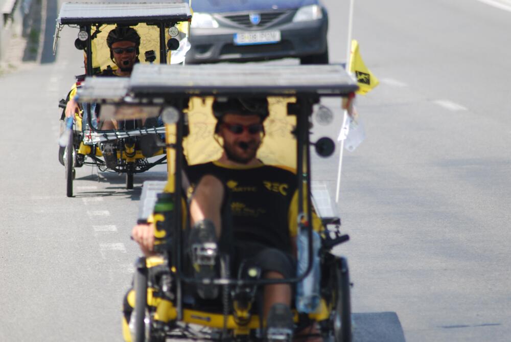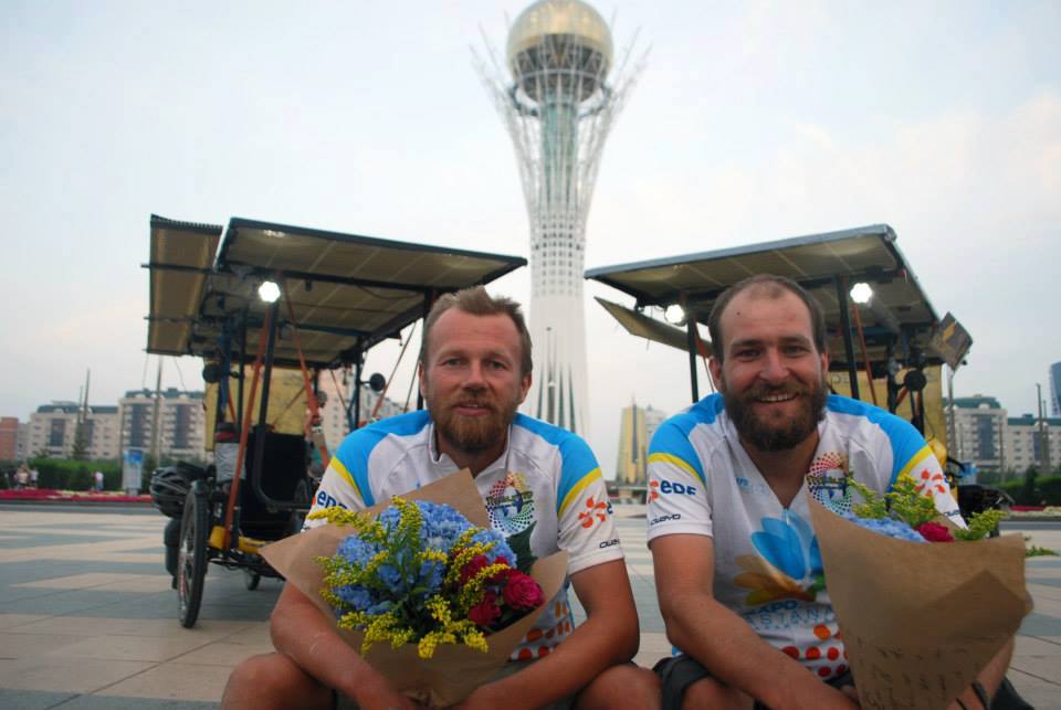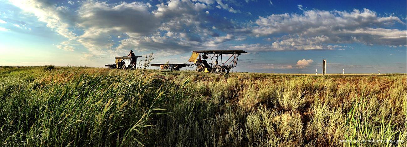 Czech Solar Team - Honza a Karel jsou v cíli závodu The Sun Trip 2013. Astana 31.7.2013. 7777km, 46 dní, 1 kousnutí psem, zlomená vidlice a několik ustřižených šroubů. Prošli krupobitím i bouřkami. Kam přijeli, pršelo. Dojeli 4.!!!